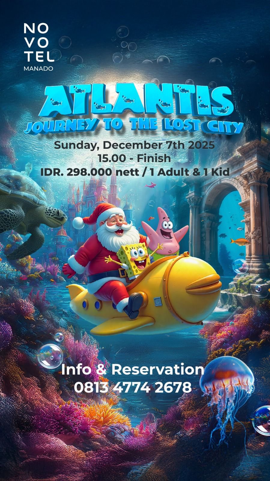 Event ini menjadi bentuk nyata komitmen Novotel Manado dalam menghadirkan momen berkesan bagi seluruh keluarga. “Atlantis: Journey to the Lost City” diharapkan dapat menjadi pengalaman Natal yang istimewa dan meninggalkan kesan mendalam bagi setiap tamu yang hadir.