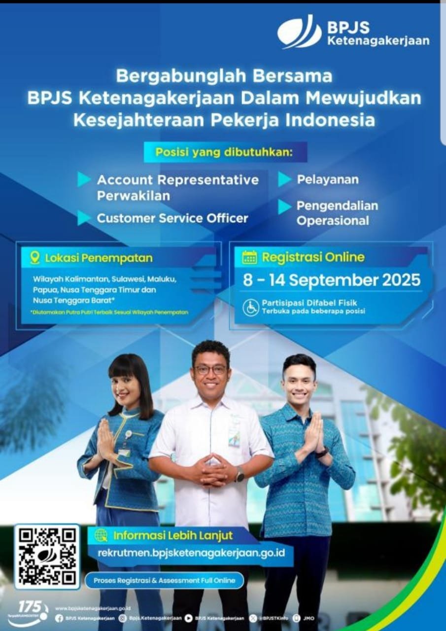 Untuk informasi lengkap mengenai persyaratan dan tahapan seleksi, masyarakat dapat langsung mengakses website resmi: rekrutmen.bpjsketenagakerjaan.go.id