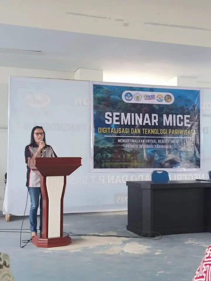 JELAJAHSULUT.COM-Jurusan Pariwisata Politeknik Negeri Manado (Polimdo) menggelar Seminar MICE (Meeting, Incentive, Convention, Exhibition) bertema “Digitalisasi dan Teknologi Pariwisata”, di Gedung Kuliah Terpadu (GKT) Polimdo, Kamis (4/12/2025).