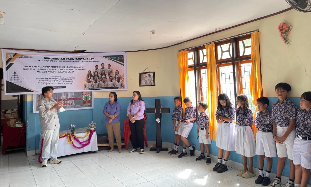 Melalui program Pengabdian Berbasis Masyarakat – Mahasiswa (PBM-M), tim dari Jurusan Teknik Sipil melaksanakan perbaikan sarana pendukung kegiatan belajar di SD GMIM 01 Wenang Selatan, Kecamatan Wenang, Kota Manado.