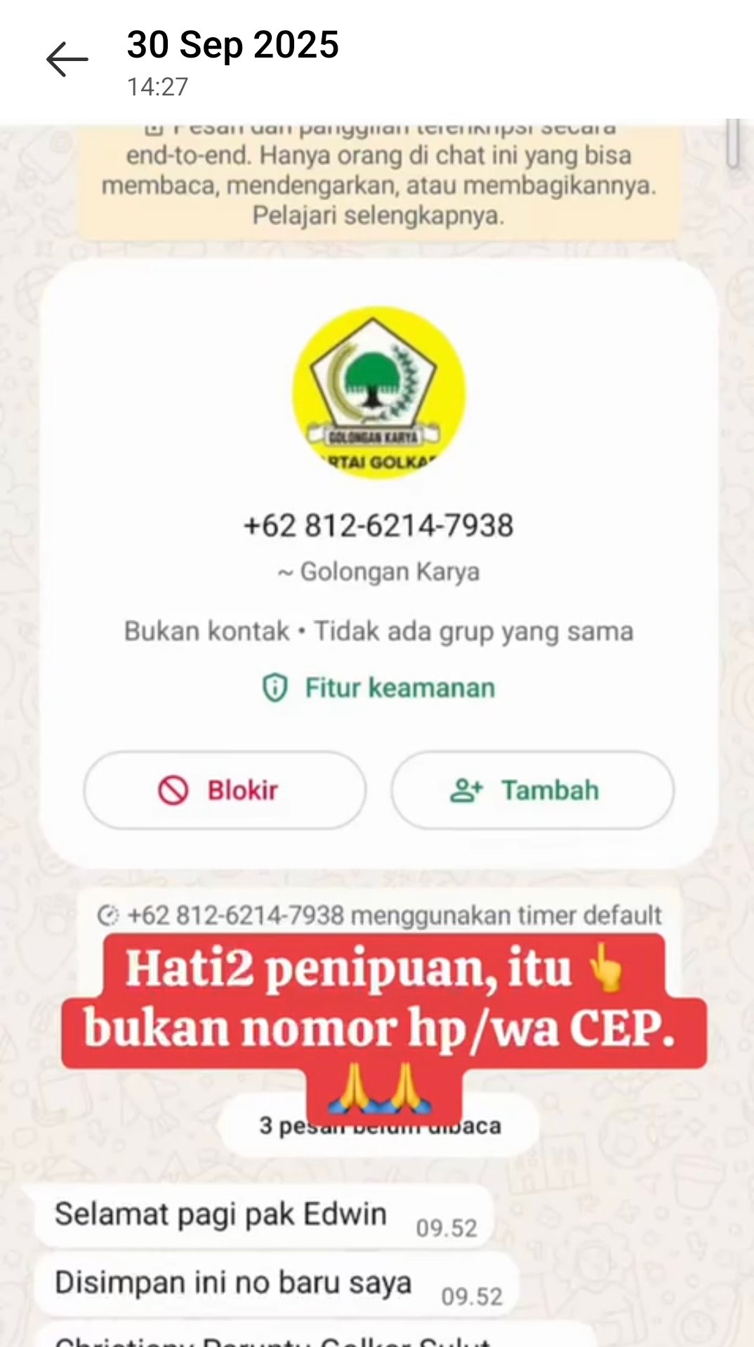 Belakangan ini beredar pesan WhatsApp dari nomor asing yang menggunakan foto dan nama Tetty Paruntu. Oknum tersebut mencoba menipu kerabat serta orang-orang dekat dengan Tetty dengan dalih menawarkan proyek.