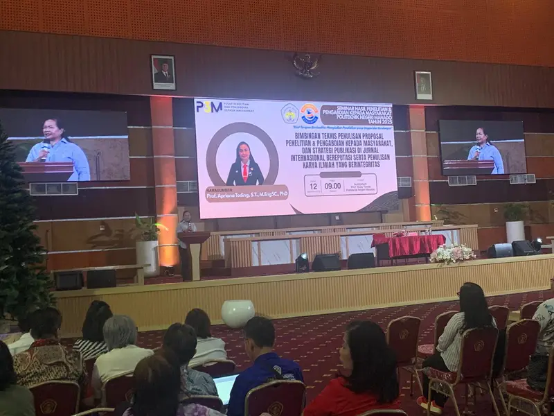 JELAJAHSULUT.COM-Pusat Penelitian dan Pengabdian kepada Masyarakat (P3M) Politeknik Negeri Manado (Polimdo) melaksanakan Seminar Hasil Penelitian dan Pengabdian kepada Masyarakat yang berlangsung selama satu hari di Ruang Auditorium Prof. Ruddy Tenda, Jumat (23/12/2025).