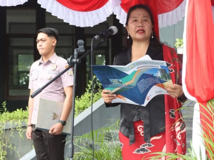 JELAJAHSULUT.COM- Direktur Politeknik Negeri Manado (Polimdo) Dra Maryke Alelo MBA membacakan amanat Menteri Pendidikan Tinggi, Sains, dan Teknologi Republik Indonesia, Prof. Brian Yuliarto dalam peringatan Hari Pendidikan Nasional (Hardiknas), Kamis (2/5/2026).